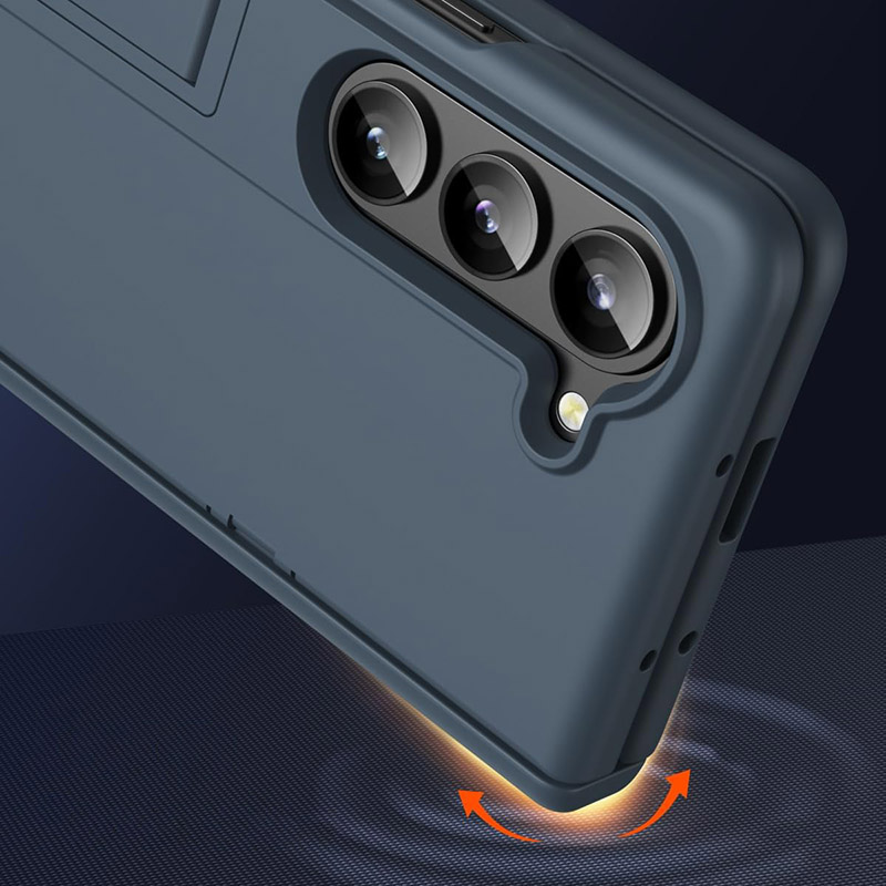 Противоударен калъф за Samsung Galaxy Z Fold 6 с пълна защита на пантата, твърд PC гръб и подсилени ъгли против удари. Вграден kickstand за хоризонтално гледане, повдигнати ръбове за камерата и екрана и тънък профил, който не пречи на сгъването.