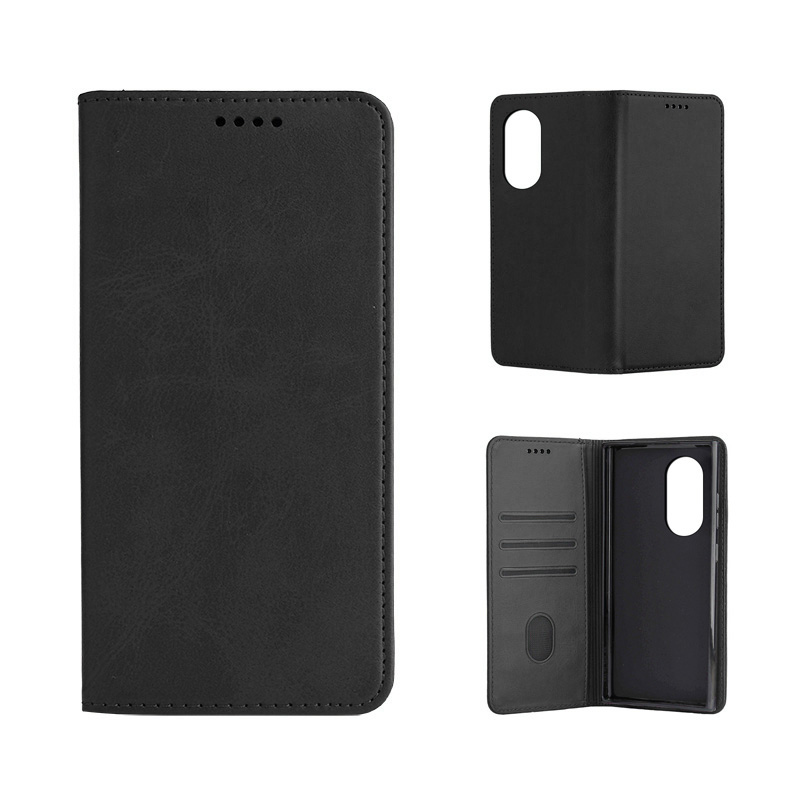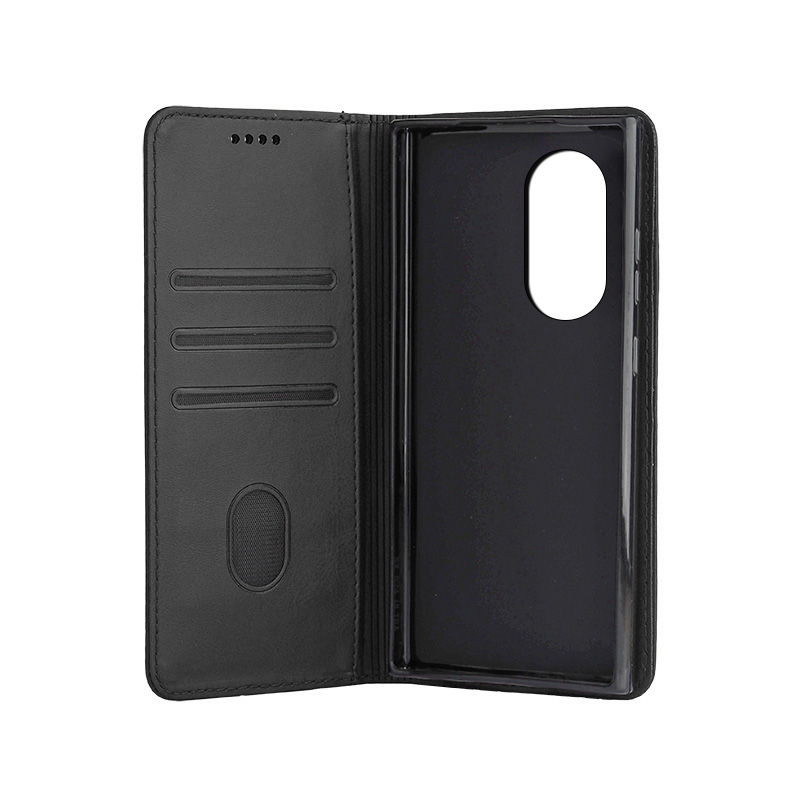 Кожен калъф с магнитен капак за Honor 90 черен