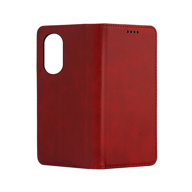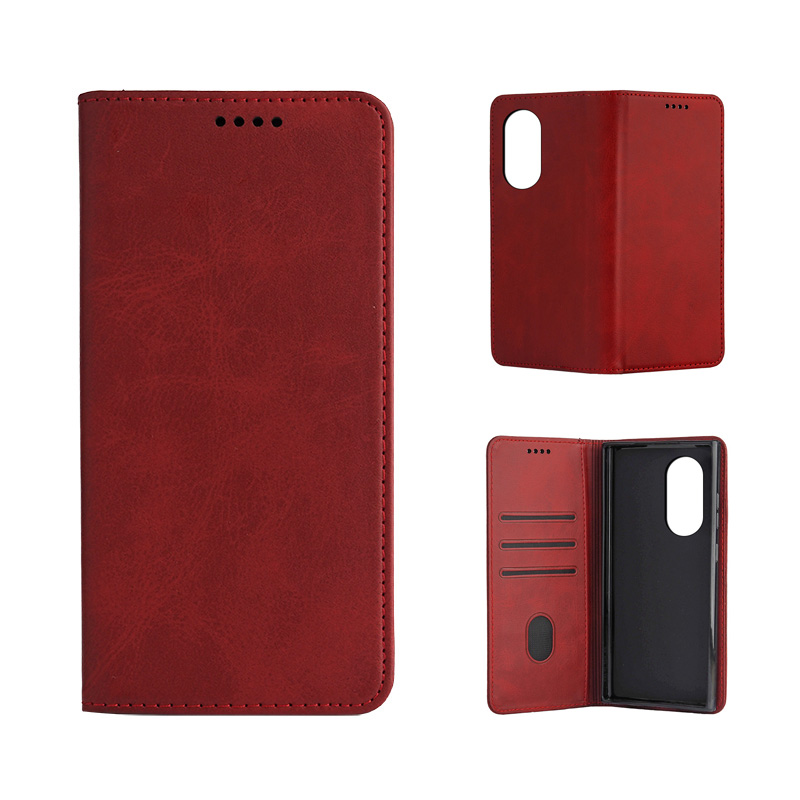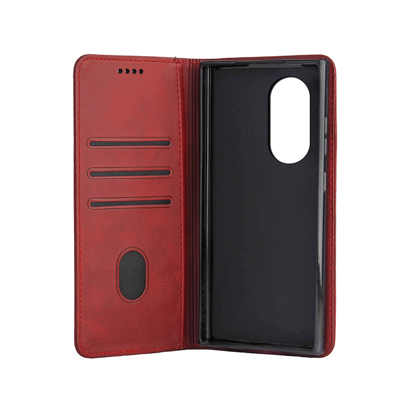 Кожен калъф с магнитен капак за Honor 90 Lite червен
