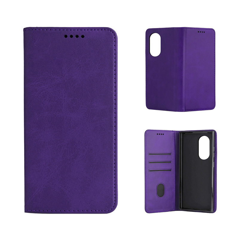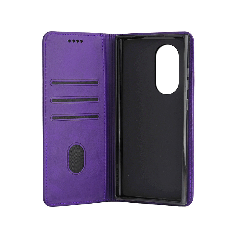 Кожен калъф с магнитен капак за Honor 90 Lite лилав