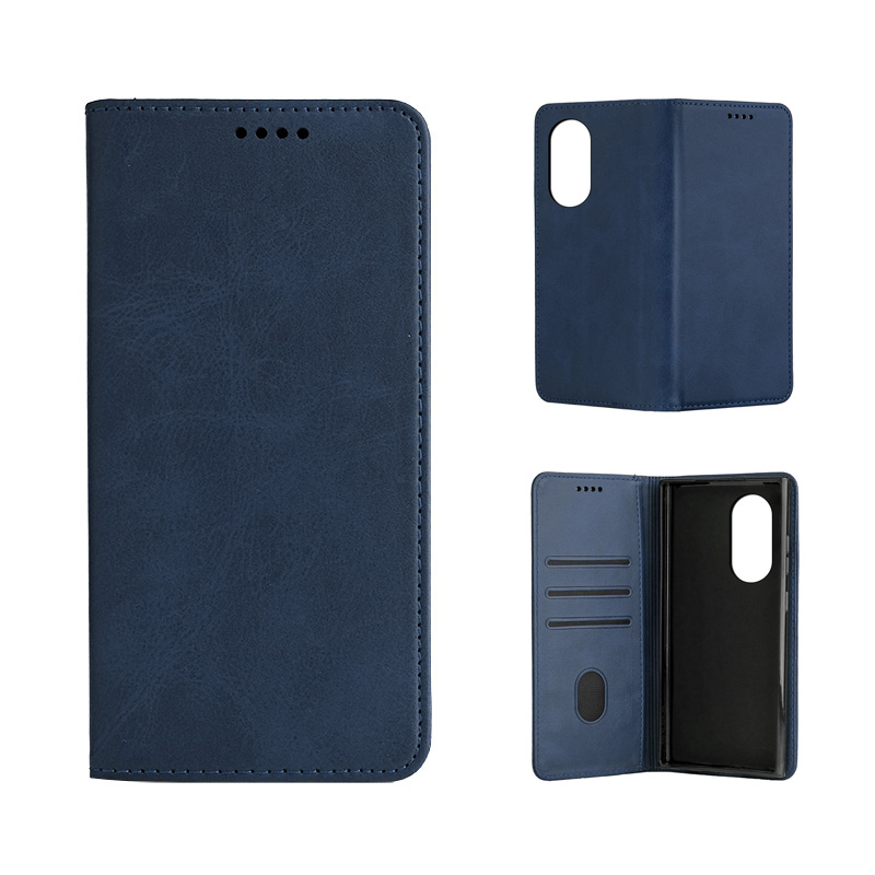 Кожен калъф с магнитен капак за Honor 90 Lite син