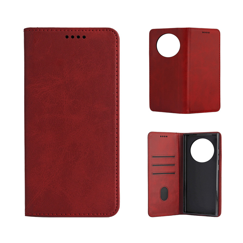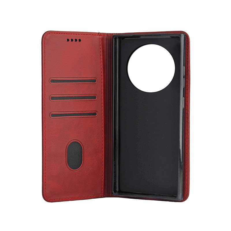 Кожен калъф с магнитен капак за Xiaomi Redmi A4 червен
