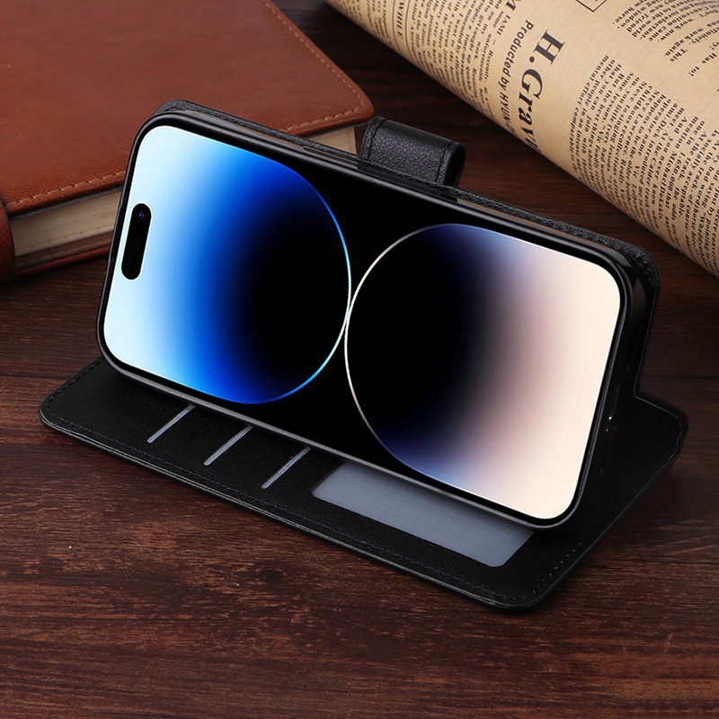 Бизнес кожен калъф тефтер за iPhone 14 Plus с джобове за кредитни карти, лични карти и пари. Качествена кожа приятна на допир прави вашият iPhone 14 Plus да има премиум излъчване. Телефонът влиза плътно в калъфа и може да се говори през специално направените за това отвори без да се отваря.