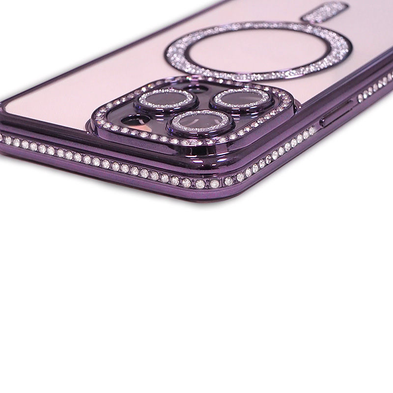 Луксозен калъф с кристали за iPhone 16 Pro Max лилавЛуксозен калъф с кристали за iPhone 16 Pro Max лилав