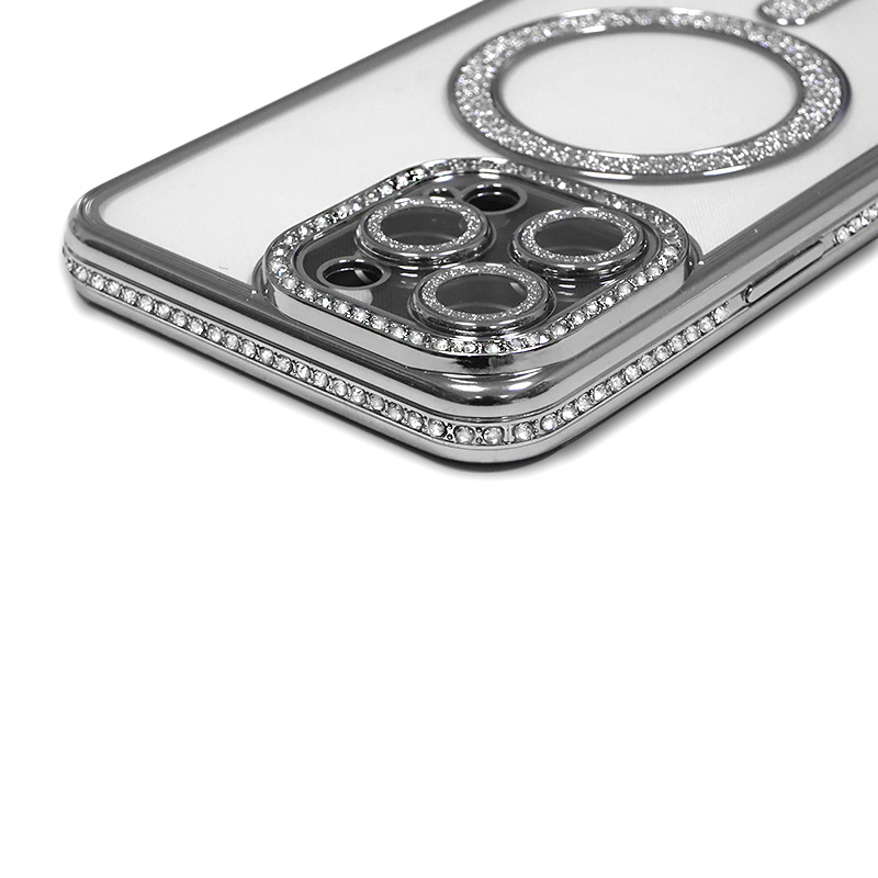Луксозен калъф с кристали за iPhone 16 Pro сребърен Луксозен калъф с кристали за iPhone 16 Pro сребърен