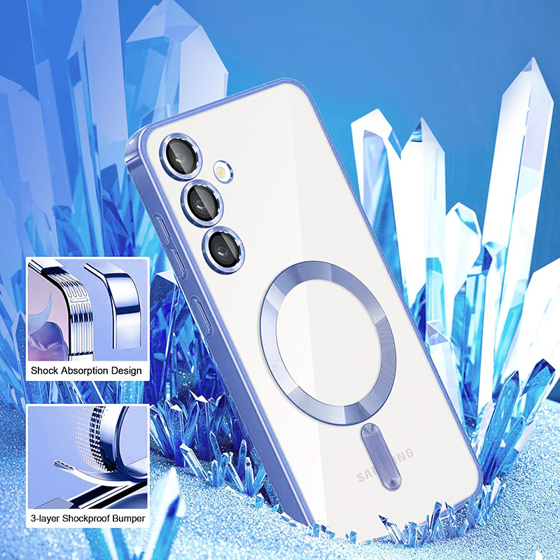 Луксозен калъф с Magsafe за Samsung Galaxy S23 Ultra с рамка с метален отблясък. Прозрачен и твърд калъф с бързо безжично зареждане на телефона. Отличава се с красивия външен вид, метални копчета и дизайн с рамка наподобяваща метал. Има пълна защита на камерата, а рамката около обективите внася допълнително лукс към този кейс.