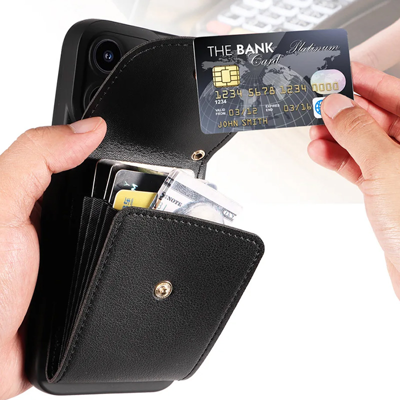 Луксозен калъф с портфейл за iPhone 16 черен Луксозен калъф с портфейл за iPhone 16 черен