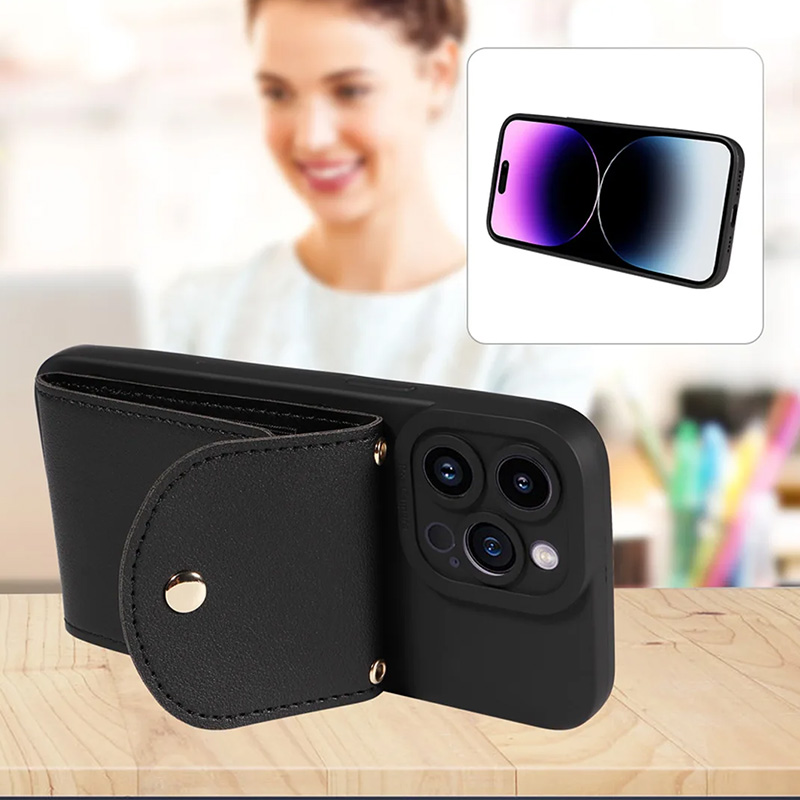 Луксозен калъф с портфейл за iPhone 16 черен