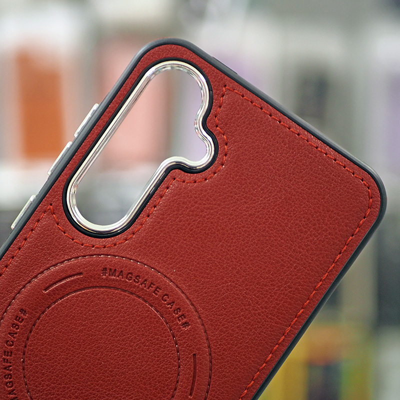 Луксозен кожен калъф с Magsafe за Samsung Galaxy S25 Ultra червен
