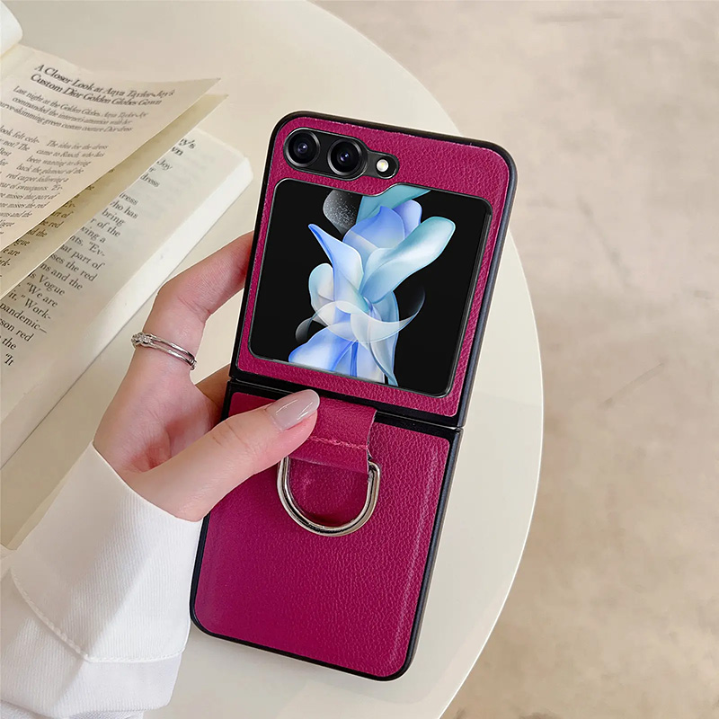 Луксозен кожен калъф с ринг за Samsung Galaxy Z Flip 6 розов