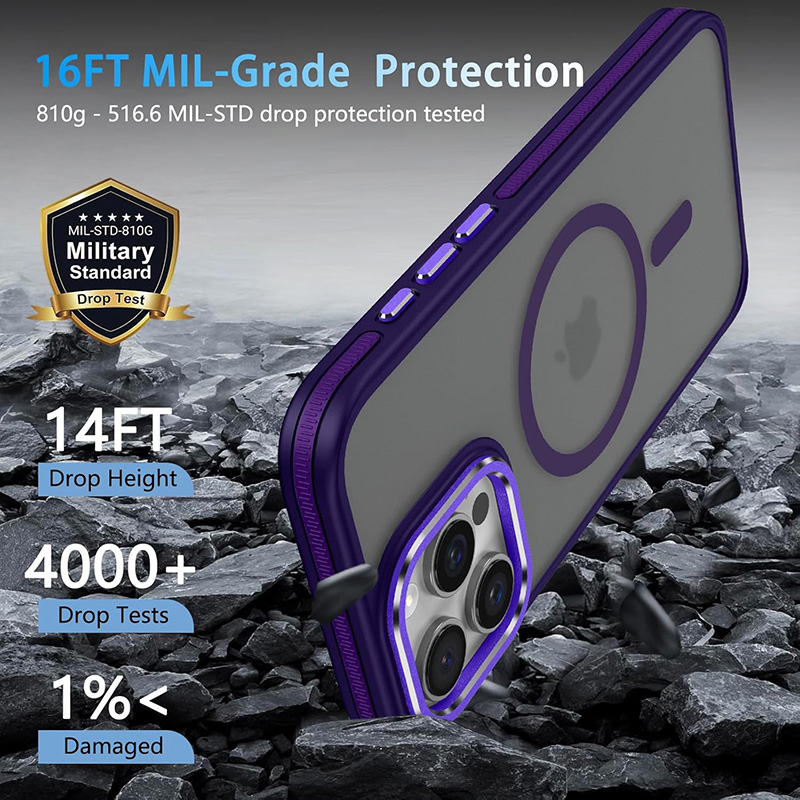 Калъфът е проектиран с ударопоглъщащи материали и 360° въздушни възглавници, които защитават всички ъгли на телефона. Тестван е за устойчивост при падане от височина до около 4.2 метра, което го поставя в категорията „military-grade“ защита. Повдигнатите ръбове около камерата и дисплея намаляват риска от надраскване и директен контакт с повърхности.