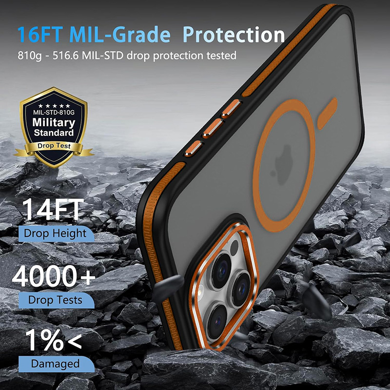 Калъфът е проектиран с ударопоглъщащи материали и 360° въздушни възглавници, които защитават всички ъгли на телефона. Тестван е за устойчивост при падане от височина до около 4.2 метра, което го поставя в категорията „military-grade“ защита. Повдигнатите ръбове около камерата и дисплея намаляват риска от надраскване и директен контакт с повърхности.
