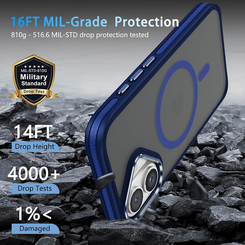 Калъфът е проектиран с ударопоглъщащи материали и 360° въздушни възглавници, които защитават всички ъгли на телефона. Тестван е за устойчивост при падане от височина до около 4.2 метра, което го поставя в категорията „military-grade“ защита. Повдигнатите ръбове около камерата и дисплея намаляват риска от надраскване и директен контакт с повърхности.