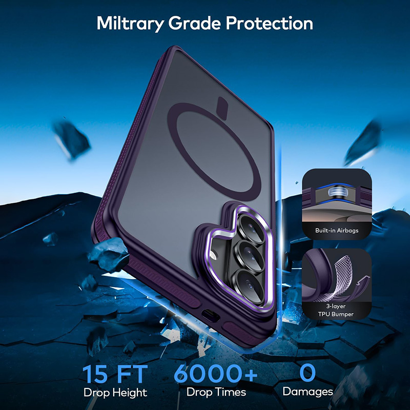 Калъфът е проектиран с ударопоглъщащи материали и 360° въздушни възглавници, които защитават всички ъгли на телефона. Тестван е за устойчивост при падане от височина до около 4.2 метра, което го поставя в категорията „military-grade“ защита. Повдигнатите ръбове около камерата и дисплея намаляват риска от надраскване и директен контакт с повърхности.