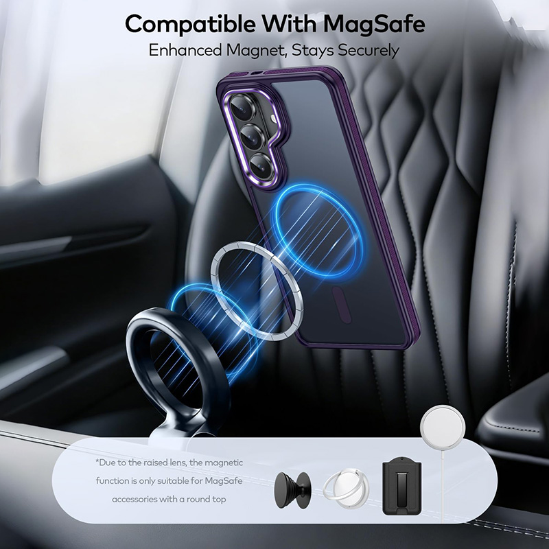 Луксозният магнитен калъф за Samsung Galaxy S26 съчетава висок клас защита, стабилна MagSafe съвместимост и изчистен модерен дизайн. Създаден за потребители, които търсят надеждност и стил в едно, този кейс осигурява максимална сигурност на устройството без компромис с удобството при ежедневна употреба.