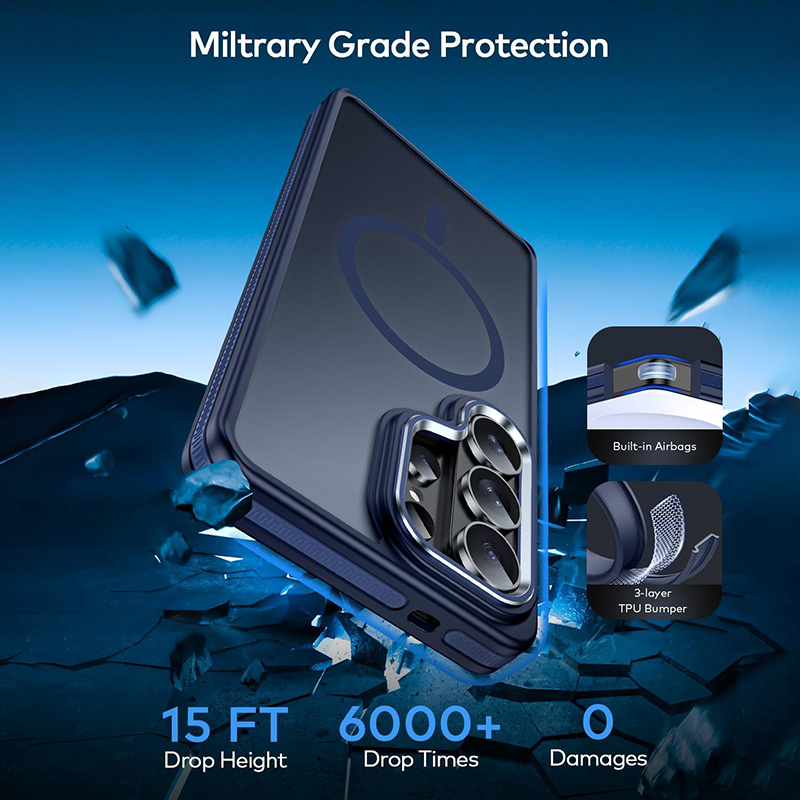 Калъфът е проектиран с ударопоглъщащи материали и 360° въздушни възглавници, които защитават всички ъгли на телефона. Тестван е за устойчивост при падане от височина до около 4.2 метра, което го поставя в категорията „military-grade“ защита. Повдигнатите ръбове около камерата и дисплея намаляват риска от надраскване и директен контакт с повърхности.