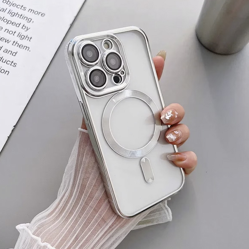 Луксозен прозрачен калъф за iPhone 13 Pro – сребърен