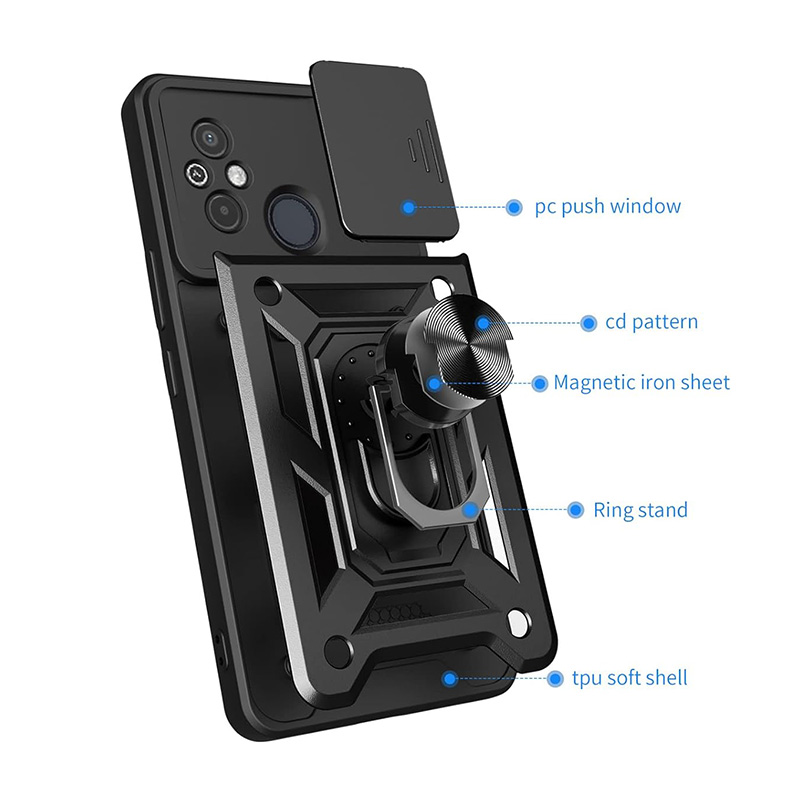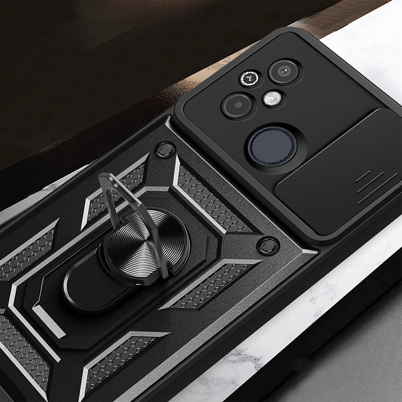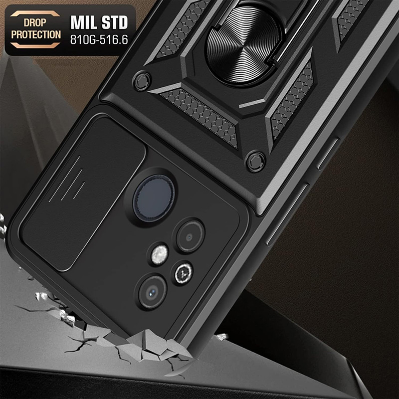 Удароустойчив калъф за Xiaomi Redmi 12C тип Armor със защита на камерата. Здрав калъф, който ще предпази телефона ви от удари и изпускания. Има специално капаче за камерата, което може да се отворя и затваря.