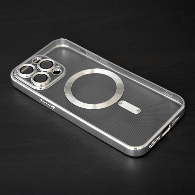 Прозрачен силиконов калъф за iPhone 15 Pro с пълна защита на камерата. Луксозен и красив калъф, който подчертава формите на вашия iPhone. Прозрачната повърхност дава възможност да се вижда цвета и логото на телефона ви. Има блестяща рамка, която прави този калъф уникален и различен от всички останали калъфи.