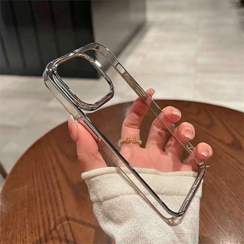 Прозрачен удароустойчив твърд калъф за iPhone 15 Pro сребъренПрозрачен удароустойчив твърд калъф за iPhone 15 Pro сребърен
