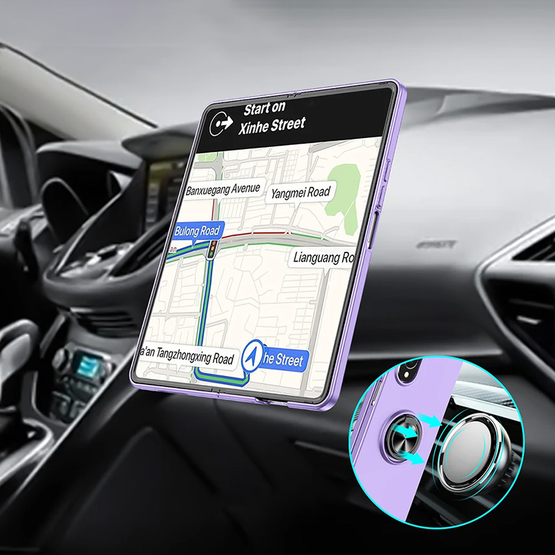 Калъф за Samsung Galaxy Z Fold5 с ринг. Ринга ви помага да държите телефона по-стабилно и като поставка. Калъфи пасва идеално на телефона, като това не пречи на неговото правилно затваряне и отваряне.