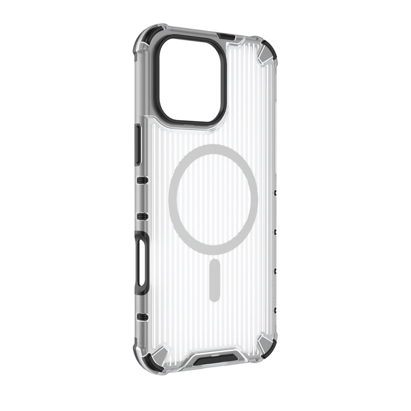 Удароустойчив калъф с Magsafe за iPhone 16 Pro Max и полупрозрачен гръб. Противоударен калъф с красив дизайн, подсилени ъгли и релефен гръб. Високи ръбове, които ще предпазят сигурно камерите и екрана на телефона. Благодарение на формата на калъфа имате добър захват и сигурност, когато работите с телефона.