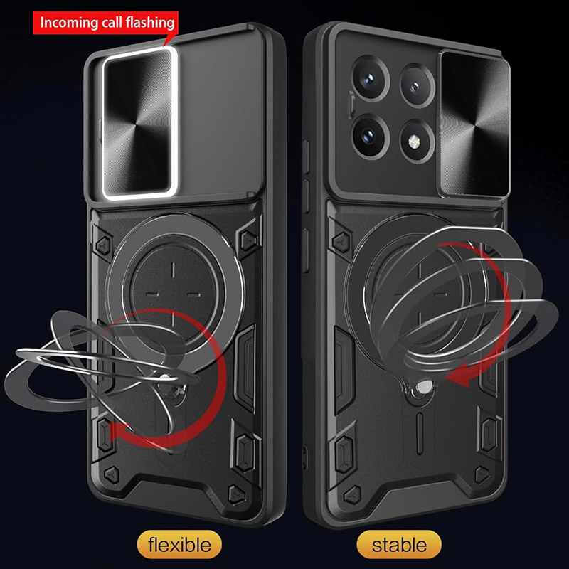 Удароустойчив калъф за Honor X8B с голям пръстен и пълна защита на камерата. Здрав калъф, който ще предпази телефона ви от удари и изпускания. Има специално капаче за камерата, което може да се отворя и затваря. Калъфа е изработен от здрав и твърд материал, който абсорбира ударите при падане. На гърба, където е пръстена има магнит за удобно закрепване към магнитни стойки.