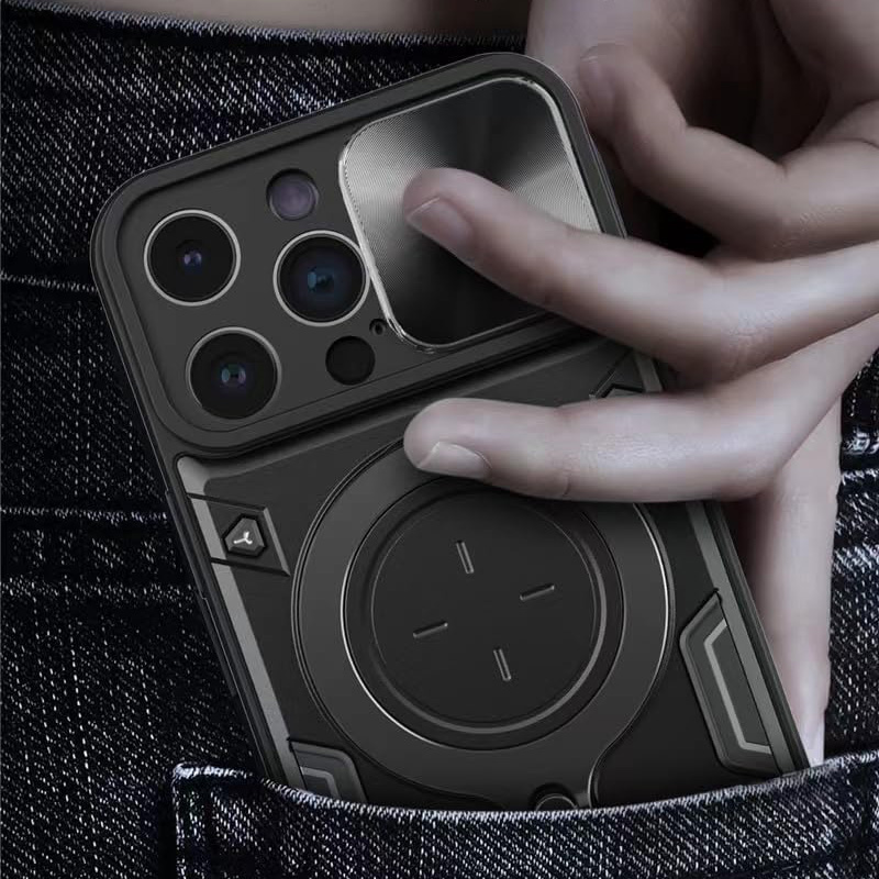 Удароустойчив калъф с пръстен за iPhone 16 Plus, който ще предпази сигурно телефона ви. Изработен от здрав и твърд материал с голяма дебела, калъфа абсорбира ударите и предпазва телефона и екрана от повреди. На гърба на калъфа има пръстен, който може да използвате като поставка или при разговори с телефона. Повърхността е абразивна и осигурява добро захващате с ръката, което предотвратява изпускане. За защита на камерата се грижи подвижното капаче, което покрива изцяло камерите.