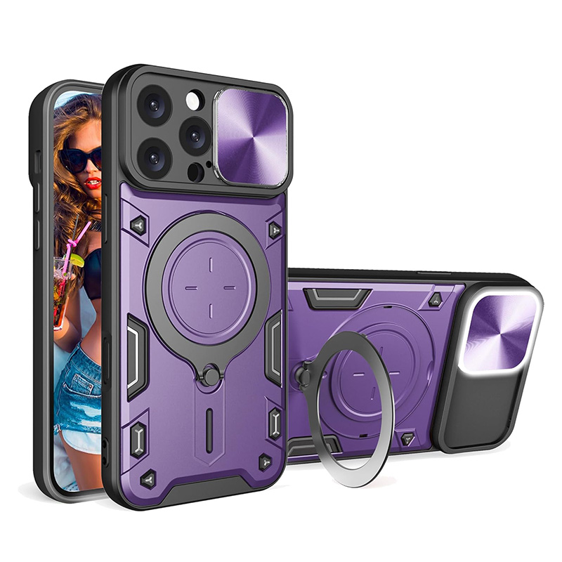 Удароустойчив калъф с пръстен за iPhone 16 Pro Max лилав