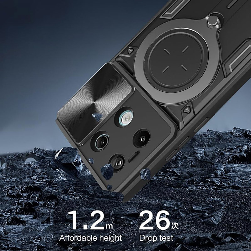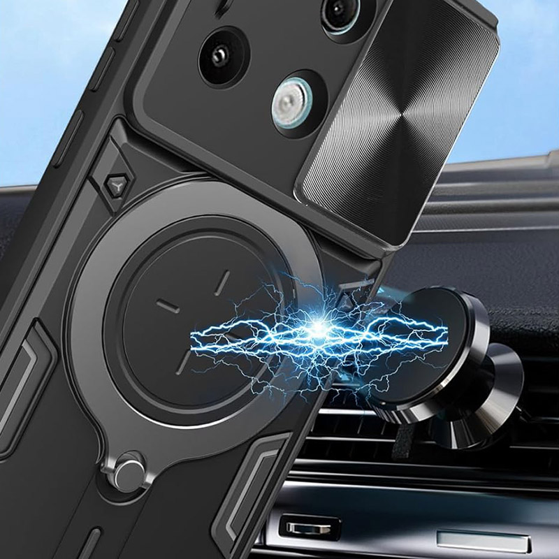 Удароустойчив калъф за Xiaomi Redmi Note 13 Pro с голям пръстен и пълна защита на камерата. Здрав калъф, който ще предпази телефона ви от удари и изпускания. Има специално капаче за камерата, което може да се отворя и затваря. Калъфа е изработен от здрав и твърд материал, който абсорбира ударите при падане. На гърба, където е пръстена има магнит за удобно закрепване към магнитни стойки.