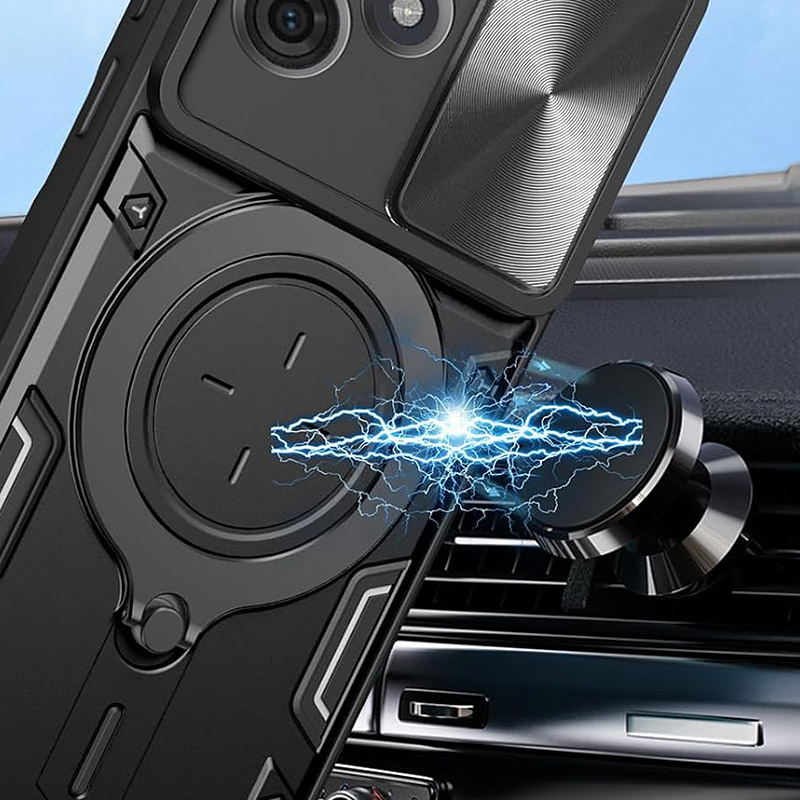 Удароустойчив калъф с ринг за Motorola Moto G54 тип Armor със защита на камерата. Здрав калъф, който ще предпази телефона ви от удари и изпускания. Има специално капаче за камерата, което може да се отворя и затваря.