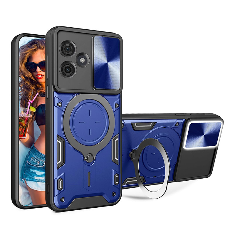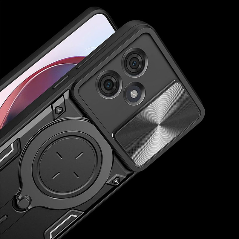 Удароустойчив калъф с ринг за Motorola Moto G54 тип Armor със защита на камерата. Здрав калъф, който ще предпази телефона ви от удари и изпускания. Има специално капаче за камерата, което може да се отворя и затваря.